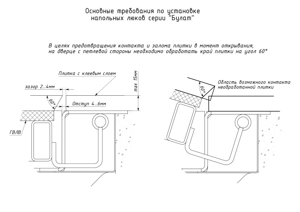 Продуманная схема монтажа с облицовкой примыкающего по периметру обрамления и полотна керамическим или ламинированным покрытием с эффектом невидимки.