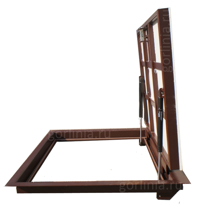 Заказная конструкция с подъемным механизмом по стороне 600 и удобным световым окном 550*700 для спуска по лестнице в погреб.