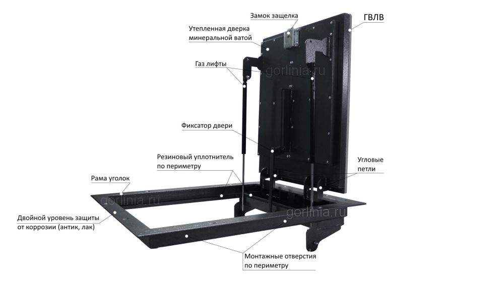 Внимание: УЗКИЙ проём в свету при открытой крышке люка: 450х660 мм! Люк предназначен для инспекции технического подполья.