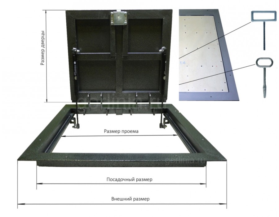 - для подъема используется съемная вставная ручка, в остальное время поверхность остается полностью замаскированной.